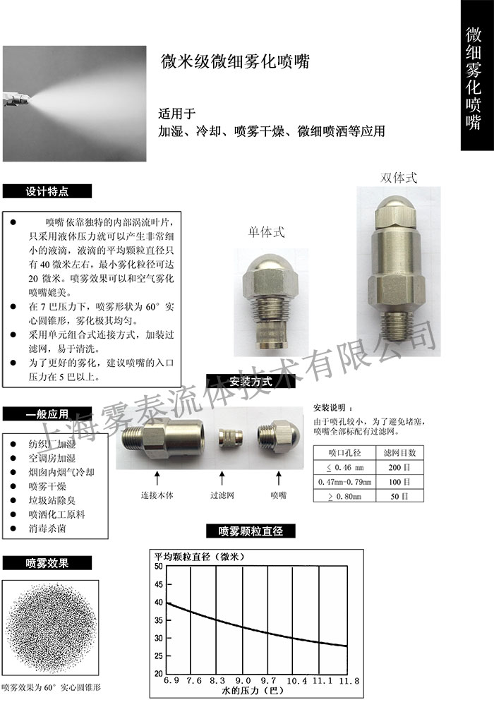 壓力式霧化噴嘴 壓力式微霧噴嘴 可應(yīng)用于管道、煙氣、風(fēng)道等加濕; 礦區(qū)、道路、脫硫塔等環(huán)境除塵; 噴霧冷卻、微細(xì)噴灑等。 水壓越大,噴霧效果越好。為達(dá)到理想效果,建議水壓不小于5公斤。 在線(xiàn)咨詢(xún) 產(chǎn)品詳情 可應(yīng)用于管道、煙氣、風(fēng)道等加濕; 礦區(qū)、道路、脫硫塔等環(huán)境除塵; 噴霧冷卻、微細(xì)噴灑等。 水壓越大,噴霧效果越好。為達(dá)到理想效果,建議水壓不小于5公斤。 產(chǎn)品名稱(chēng):壓力式微霧噴嘴
